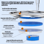 - 💧 Filtración múltiple: elimina pelos, olores y suaviza el agua.